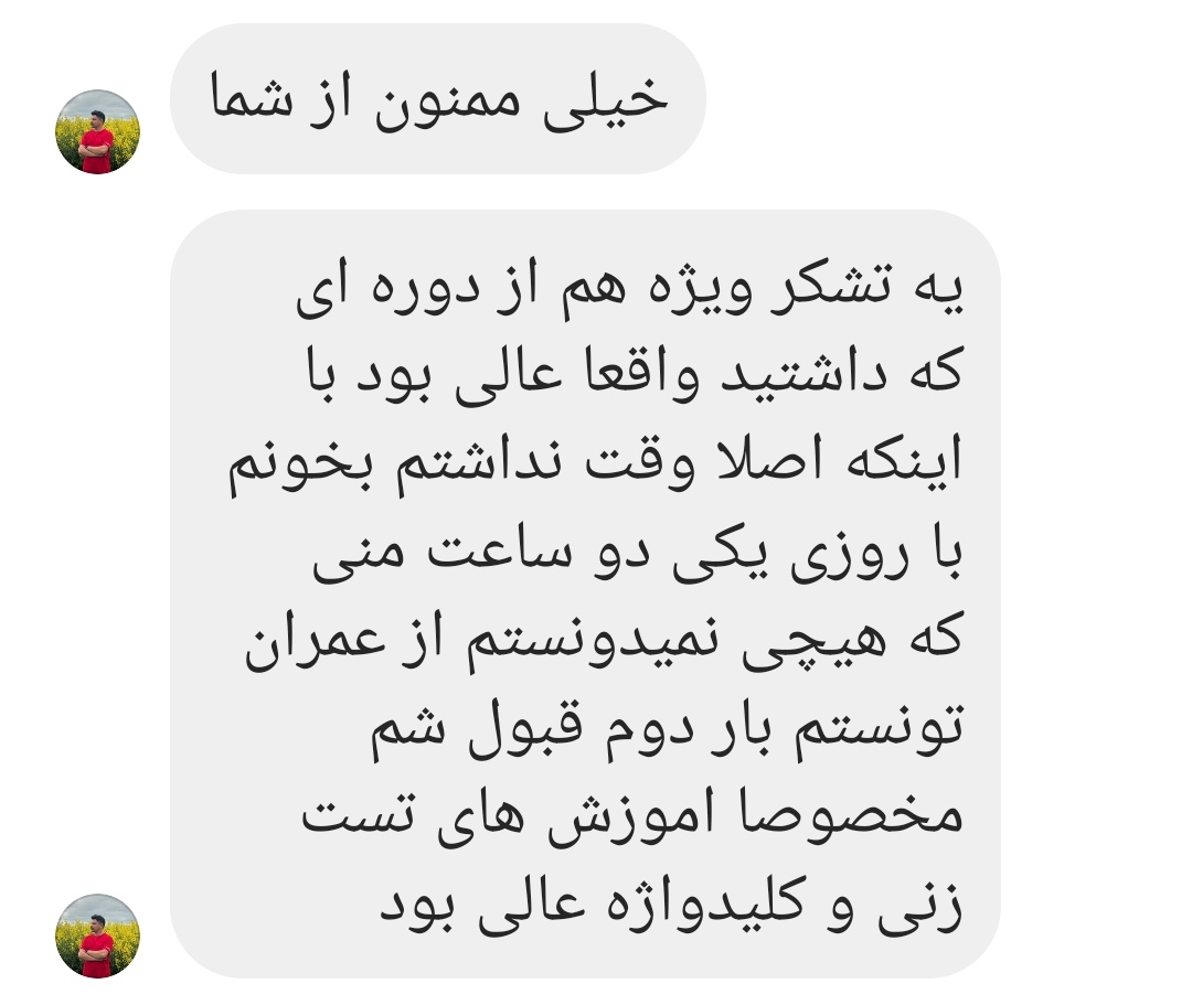 ✅تضمین قبولی هم داری که اگه قبول نشدی، یه دوره آپدیت رایگان برات میزارم و دوره بعدیش رایگان بهت آموزش میدم.